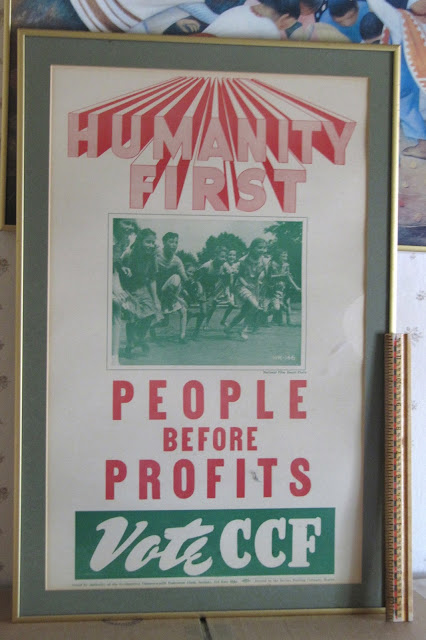 I tried selling these to local antique dealers. Two didn't know what the CCF was and weren't interested. The third one did but said they were too political and that "politics in this province can be dangerous" and also wasn't interested. I think I responded by stating that we don't have politics in Saskatchewan anymore but the posters were from a time when we did. - NYC